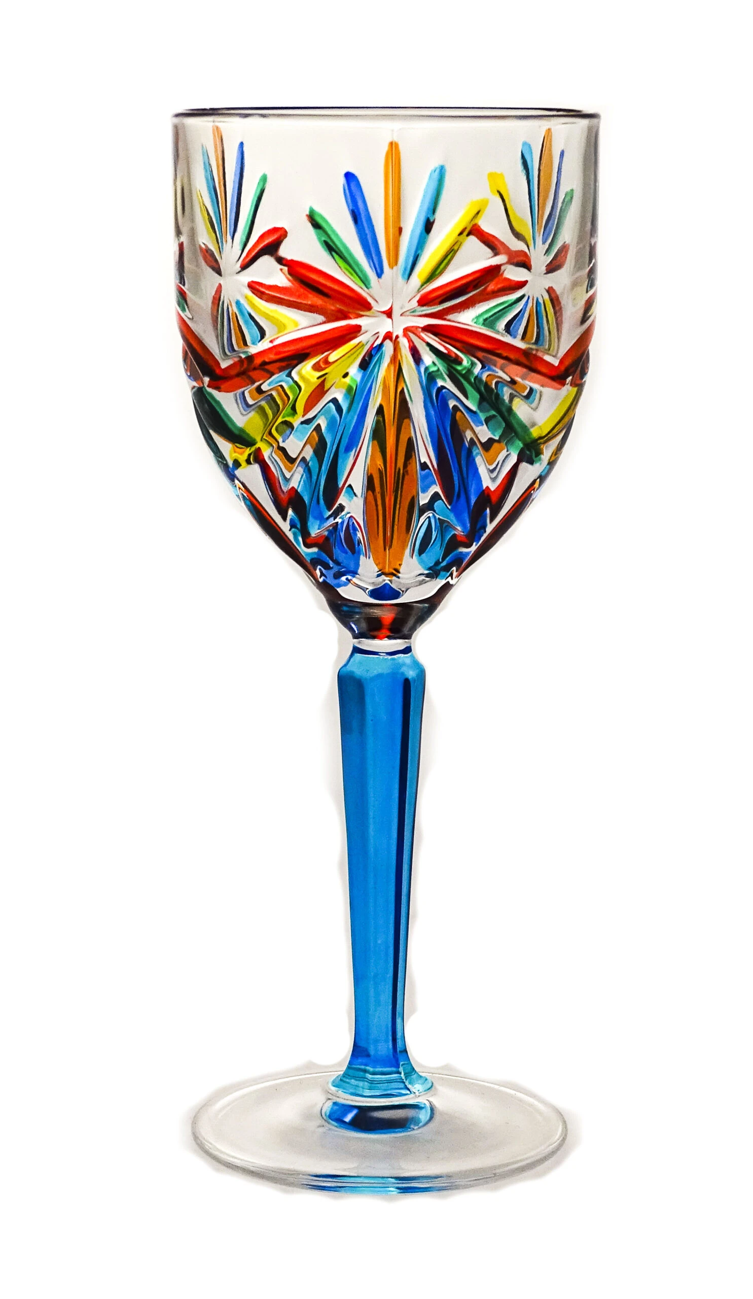 Oasis turquoise blue stem wine glass design created by glass CC Zecchin MURANO Style makers and decorators in Italy. 23 cl 7 3/4/oz VA257